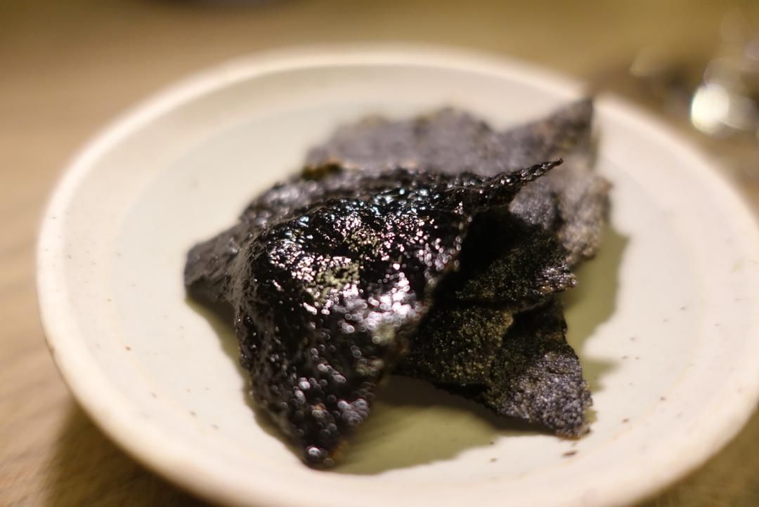 Toasted seaweed crackers come with drinks to launch the meal with a crunch.