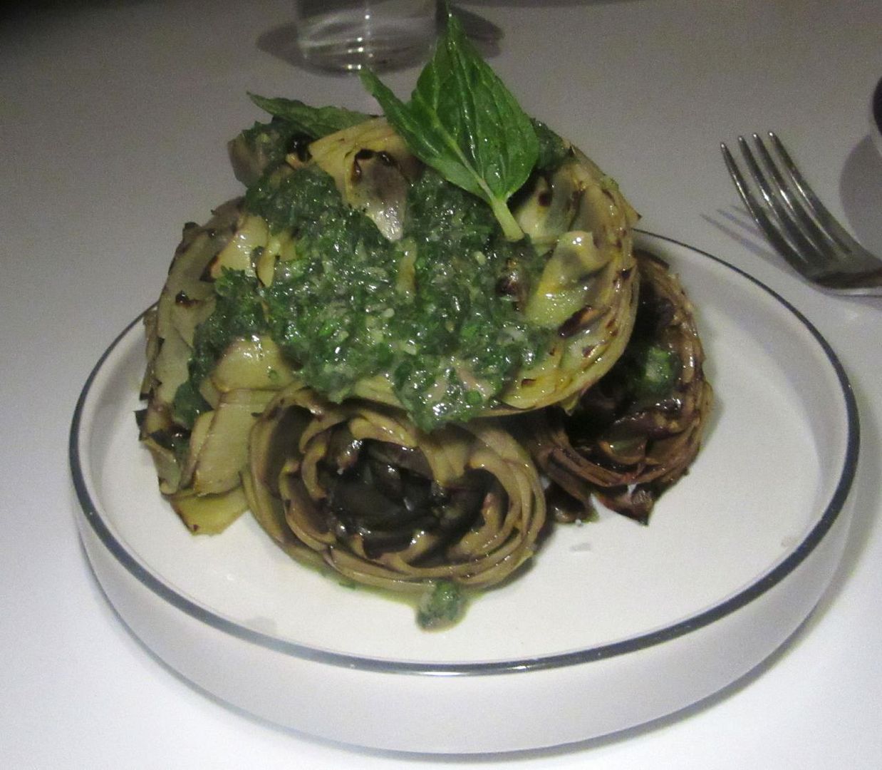 There are enough small bulbs of artichoke for all of us. Could be the chef ordered an extra because we’re five.