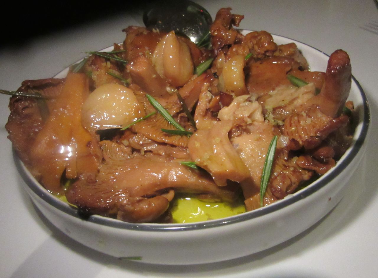 Oil-soaked chanterelles are spiked with garlic and flecked with rosemary. Maybe add a squeeze of lemon.