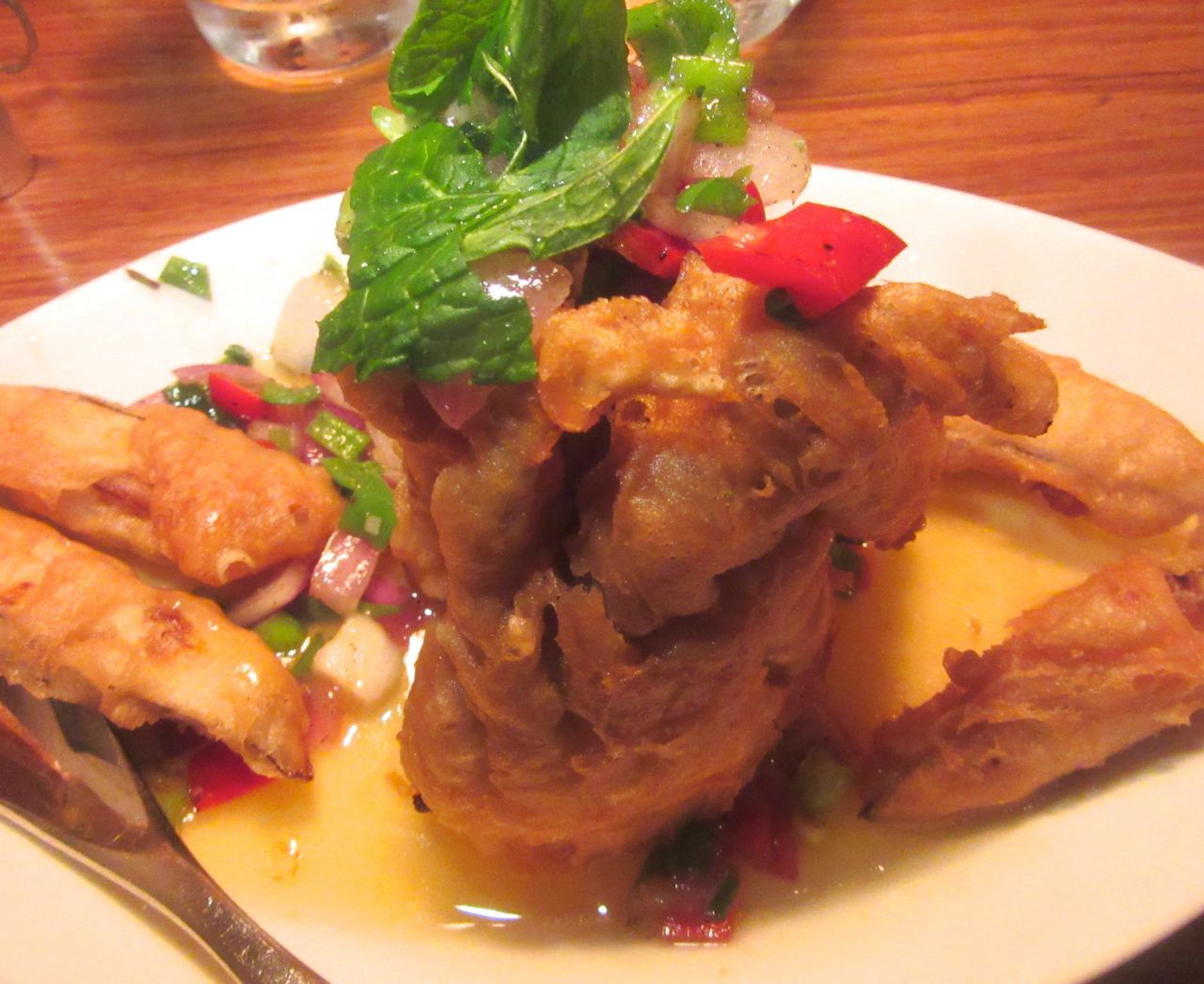 And somehow the $100 per mouth (about half that at lunch) seems not at all outrageous for the thrill of Vongerichten’s exquisite sea-urchin custard tinted with fennel juice – the spiny shells propped on a hill of fennel seed toasted rice crackers hoisted like sails, and a salad of fennel on the side – or for the Louisiana shrimp in their peppery, pungent lemongrass-and-carrot-juice bath. Sound ghastly? It’s amazingly good. Click here to read: “Lafayette: The Drake’s Progress,” March 19, 1990.